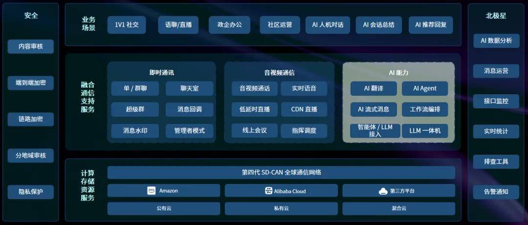 高效整合 IM、RTC 两大中枢通讯本事与 AI 智能体、智能翻译、语音识别等 AI 本事,供给一站式处分计划,助助交易敏捷构修智能通讯系统。